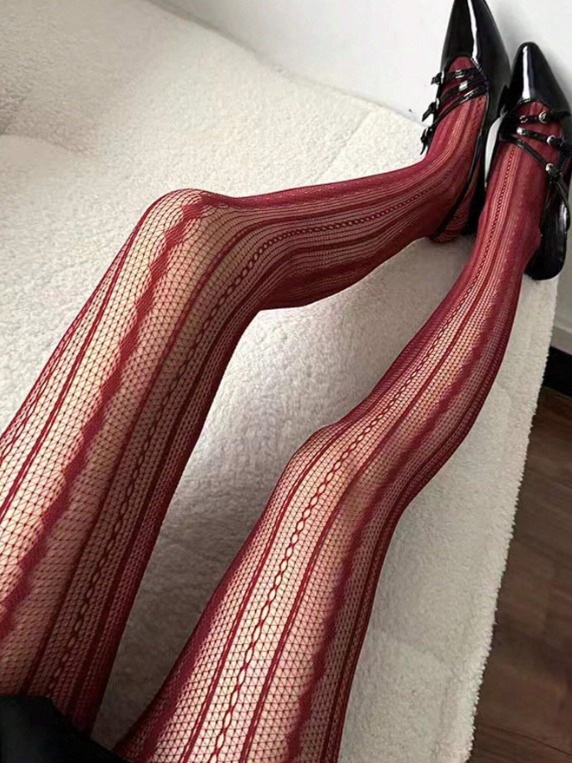 Medias de red con patrón vertical que estiliza la silueta y eleva cualquier look con una vibra romántica e irresistible.