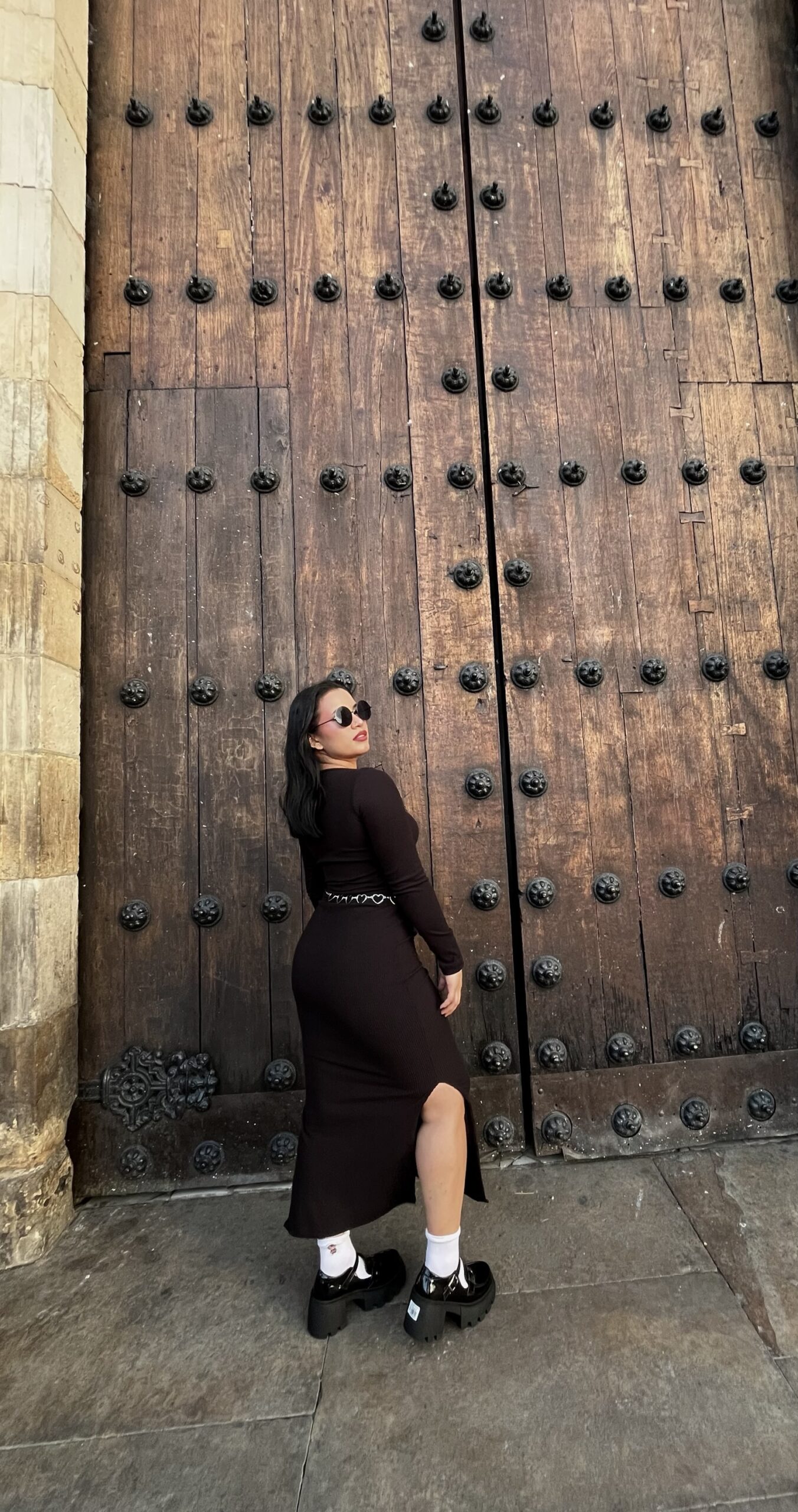 Un vestido negro largo, minimalista y atemporal. Su silueta abraza tu cuerpo sin esfuerzo y su tela se hará que se adapte perfectamente a ti.